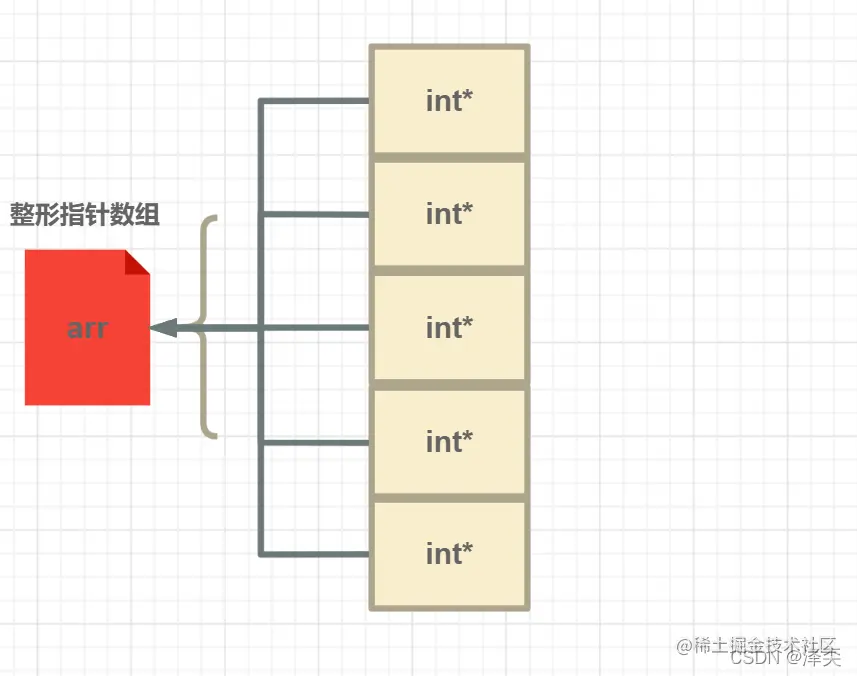 arr是一个数组,有⑤个元素,每个元素是一个整形指针