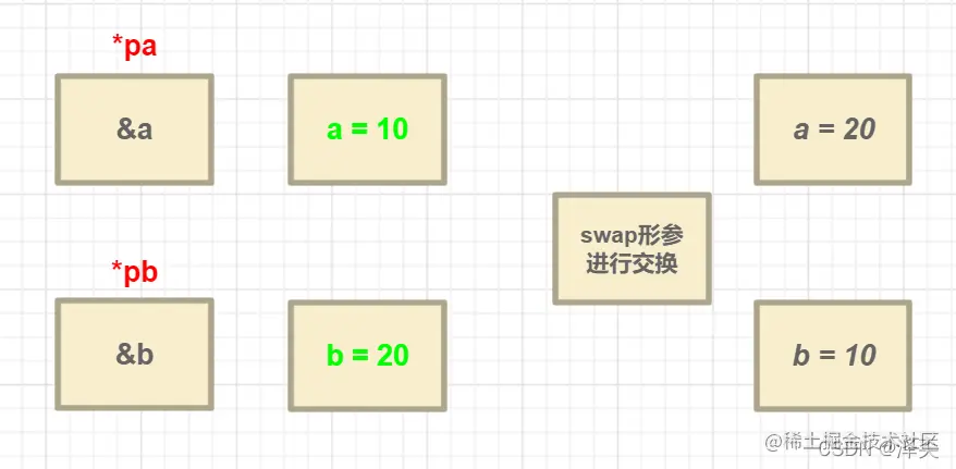 知识内容→上面的结果也是通过指针变量取得数据, 然后再通过**解引用(*)操作符改变取地址原来的值。**指针的解引用可以获取地址赋值给指针变量从而获取数值的大小(这个是初学者有时候不明白的地方,不懂可以多看几遍或者自己上手代码进行调试)