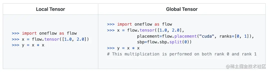 - Local Tensor 可以使用 Tensor.to_global 接口创建一个 Global Tensor,并将该 Local Tensor 作为它在当前节点的本地分量。