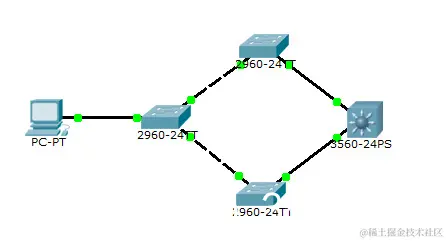 这是用Packet Tracer模拟实验的截图,可以看出,子网中只有vlan1但出现了“环路”,其实是因为EC逃避了stp计算(注:EC只能在交换网中玩儿)。
