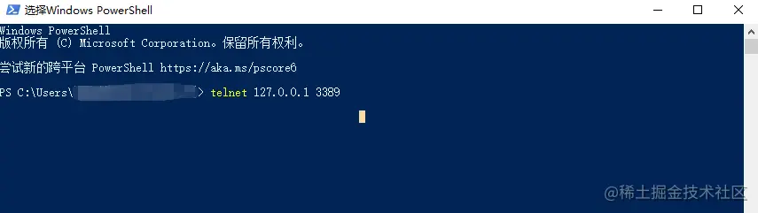 若3389端口已经成功打开,那么在命令输入后,powershell就无法显示任何内容。