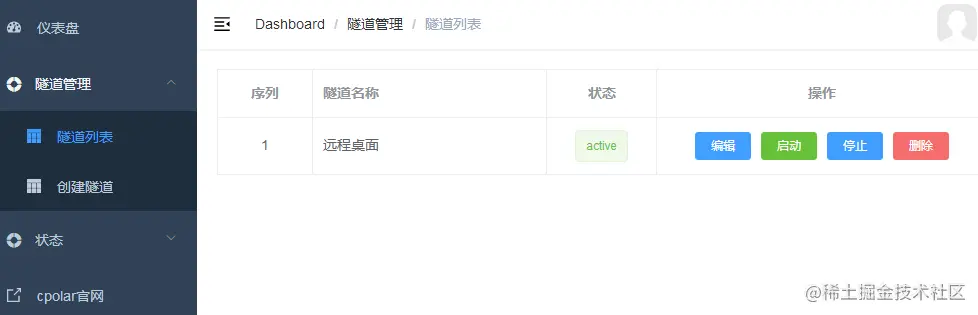 在确定已经有一条远程桌面使用的数据隧道后,我们就可以点击cpolar主界面左侧的“状态”按钮,选择“在线隧道列表”,查看该条隧道的详细情况。