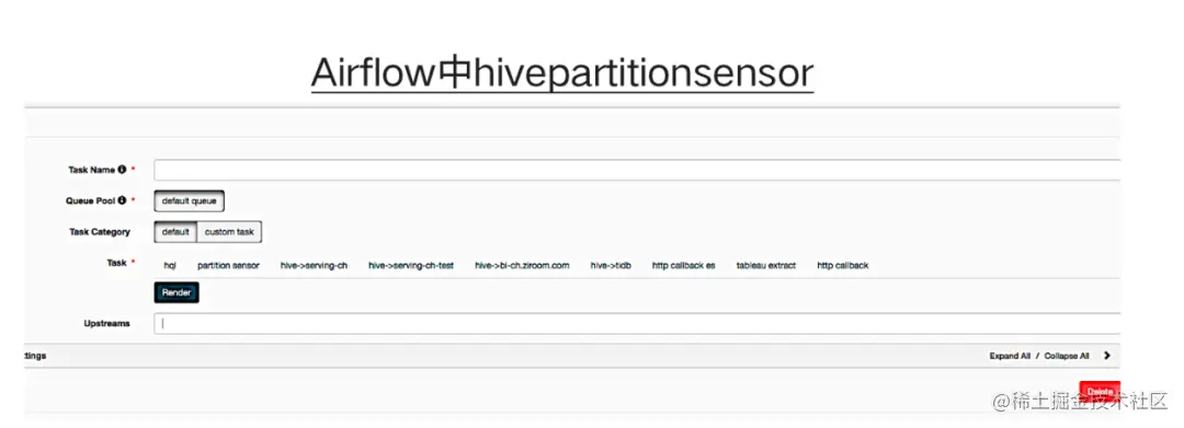 一开始,自如选用的是 Airflow,使用Airflow 可视化插件Airflow DAG createmanager plug-in来供分析师用,底层使用hivepartitionsensor,用数据依赖的方式配置调度,便于分析师理解和使用,这套解决方案,对于分析师来说体验尚可,但是面临几个较大的问题: