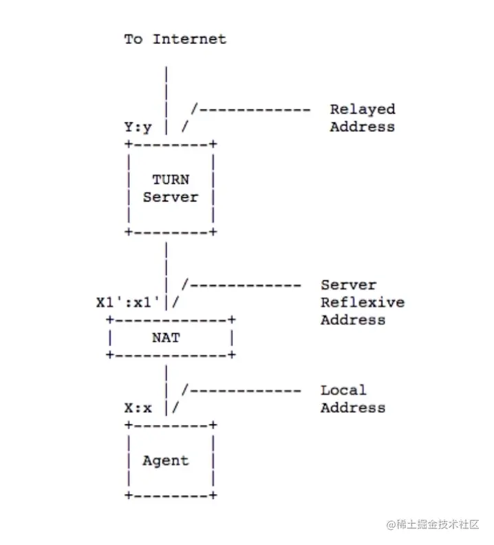 TURN给我们分配的中专地址 : 当NAT无法穿透的时候, 中转服务器会给我们开辟一个IP和端口, 一般使用UDP协议, 地址和端口是TURN服务器分配的, 类型则是“relay”