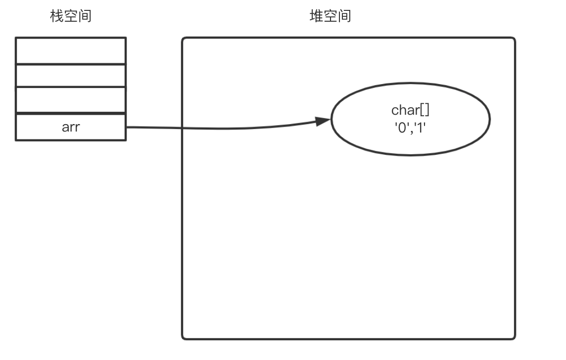 JVM会在堆空间生成一个数组对象,arr变量就指向这个数组对象