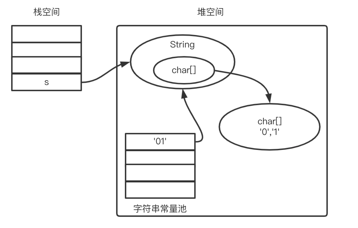 如果找不到就创建新的“01”字符串对象和字符数组对象,然后再把字符串对象引用赋值s;