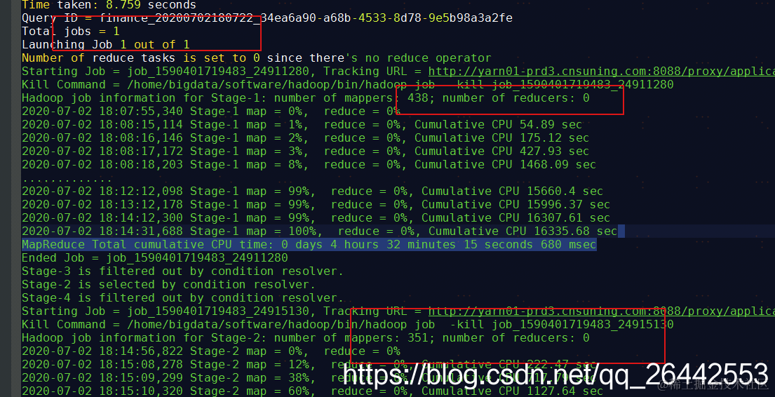 设置启动map前文件合并,将set hive.merge.smallfiles.avgsize值加大,增加文件合并的Size。按照官方的说法当输出的文件平均小于16Mb时系统会再启动一个MR进行文件合并。这下该管用了吧,请看: