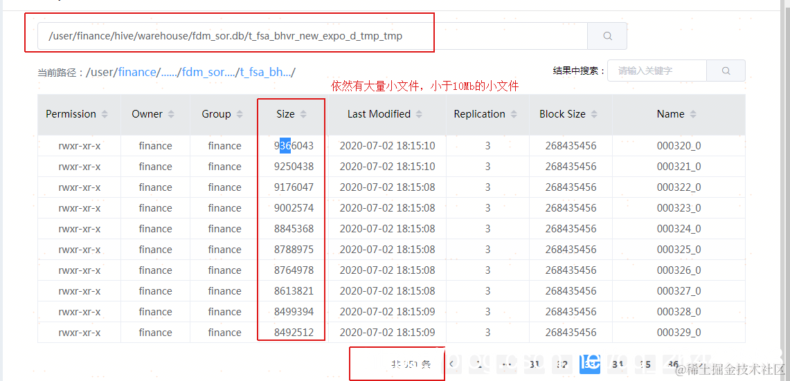 结果分析:没错,第一次MR因为Combinetext启动了438个map和上面一样,果然接着又启动了一个MR,进行输出后的文件合并。看样子很DIAO。合并要求文件大小不小256Mb,然后实际呢?pappa。文件虽然减少了很多到351个,但依然有很多小文件,很多小于10Mb的文件,这个时候心里肯定一句