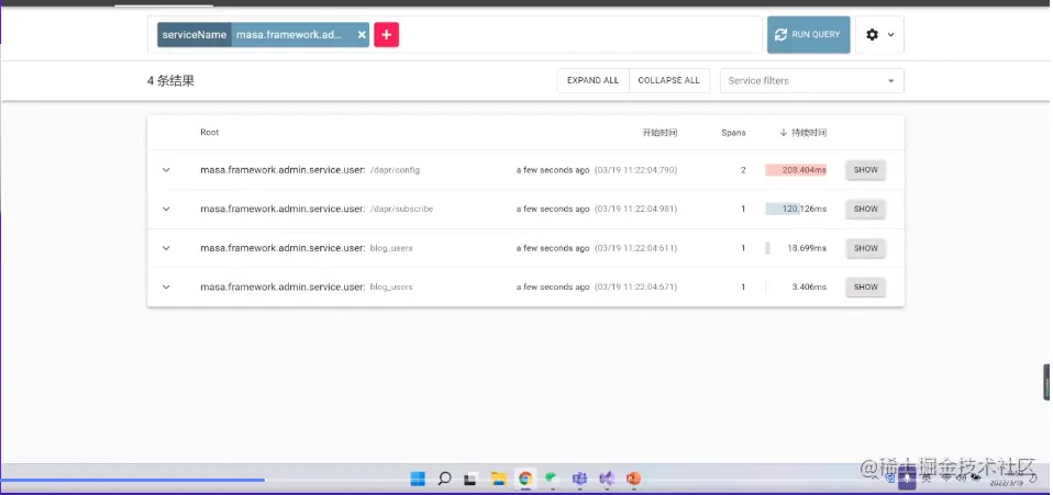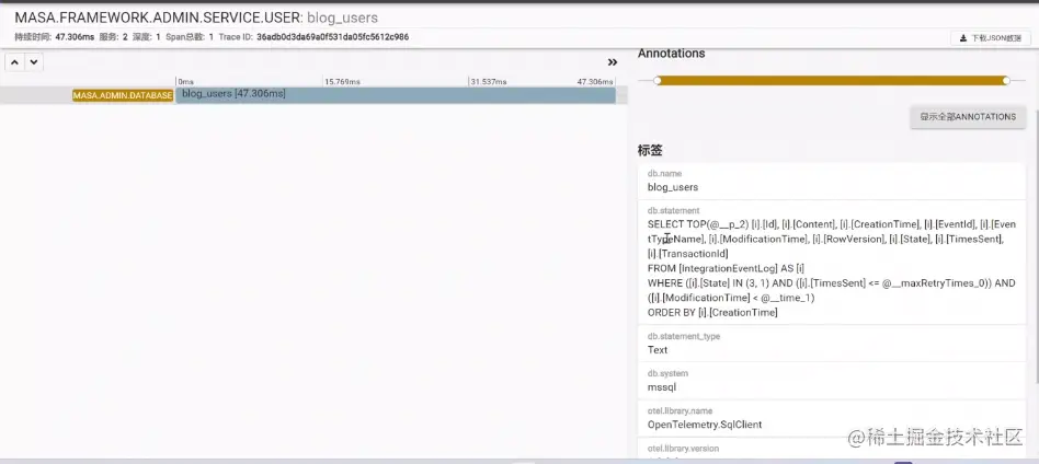 可观测性的部分,比如你有一堆请求,在这里就可以看到,是通过dapr写进来的。实际场景就是:业务报错了,当时的sql呢?当时请求的访问DB的sql语句呢?可以通过这里看到,全程是被记录的,访问服务的原始请求、请求路径、请求参数...,实际执行起来是不难的