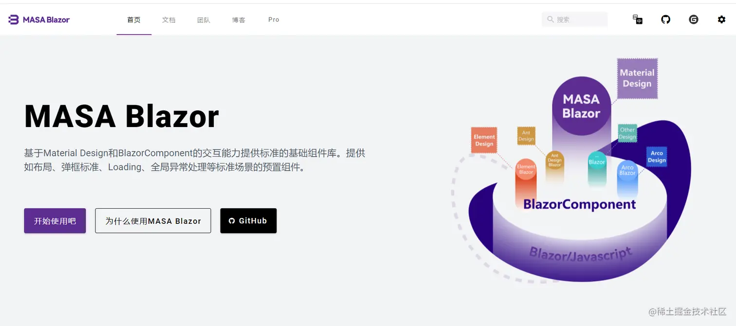 我们做了自己的首页,也可以在首页,了解更多Masa Blazor的详情