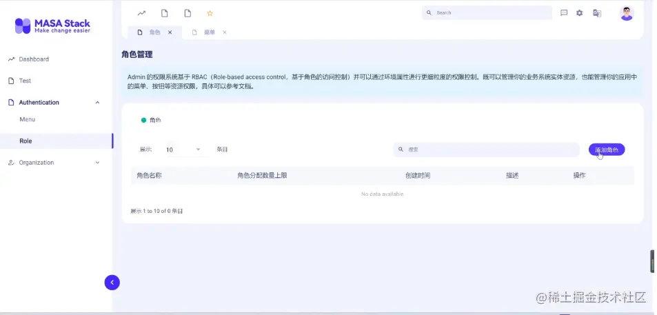 引入角色的概念,把权限和角色关联起来,让用户去扮演某种角色,然后具有该角色的权限。如果用RBAC,根据业务的复杂性,大家更倾向于用RBAC3,但MASA Framework Admin是一个比较简单的东西,暂时不会实现RBAC3这么复杂的功能。如果你需要RBAC3,然后又需要单点登录,然后不同项目之间的关系管理等等...如果需要这样的东西,可以稍微等一下。我们预计在今年7月前后,会开源另一个项目,叫MASA Auth。MASA Auth是我们MASA Stack里面的第一个正式开源的项目,里面会给大家提供非常完整的权限功能,你拿过去用,可以满足绝大多数的要求,基本上是不需要二开的