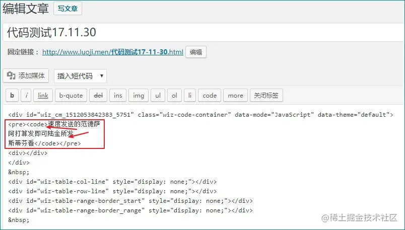 wiz的代码框发布为WP后,使用的是< pre >和< code >组合标签: