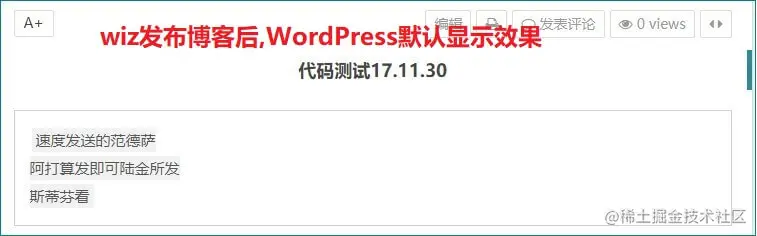 wiz发布博客后wp的默认显示效果(丑就一个字):