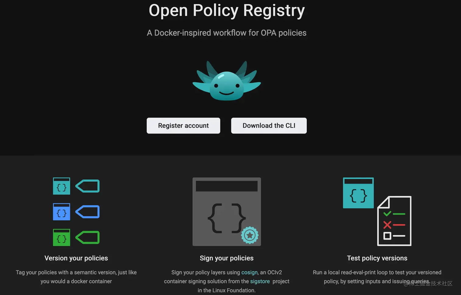 Open Policy Registry 是一个用于共享 Open Policy Agent 策略的镜像仓库,此外还提供了一个 CLI 工具,你可以像使用 Docker 一样来 push/pull 各种 Workflow。该镜像仓库遵循 OCI 规范,因此也可以使用 cosign 来对策略的“镜像”进行签名。