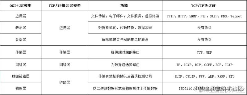 - 应用层:负责向用户提供应用程序,比如HTTP、FTP、Telnet、DNS、SMTP等。