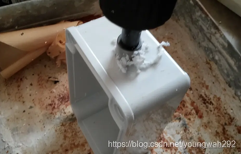**步骤④:**给壳体开孔,用来向外连接导线。