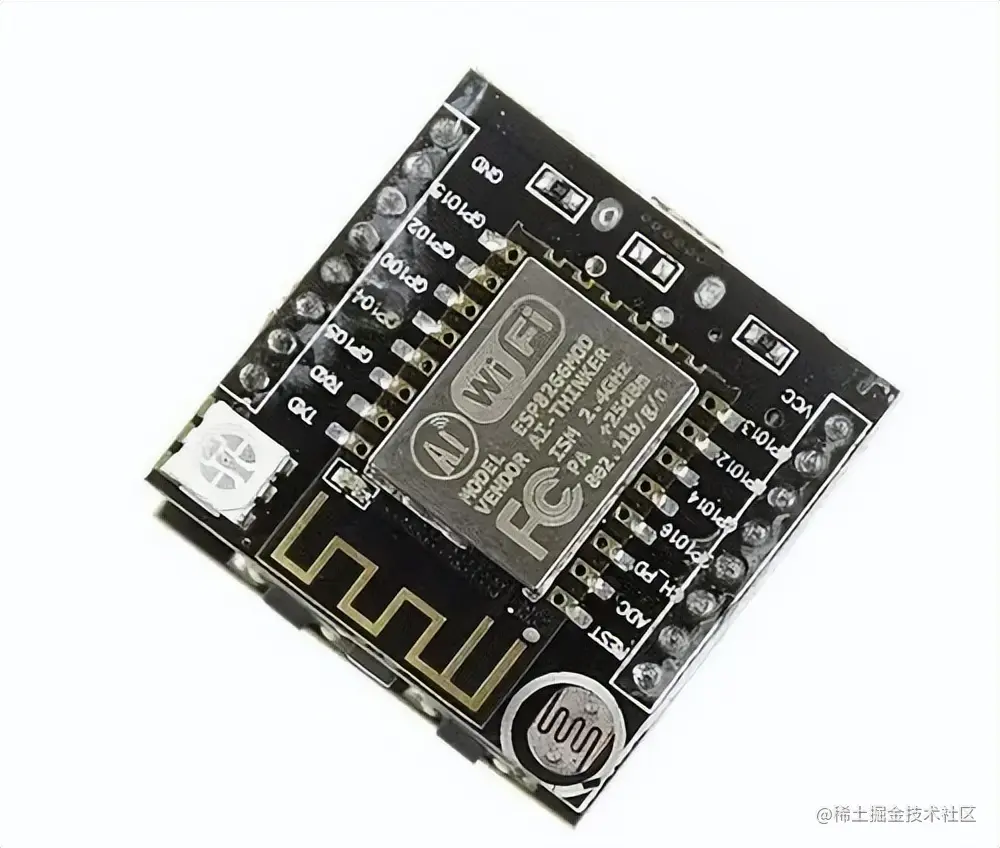 **步骤①:**准备ESP8266模块,使用到的引脚有三个:VCC、GND和GPIO12(当然也可以用其他引脚,只不过编程时需要进行初始化)。