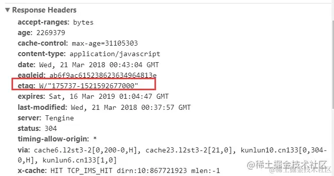 Etag是服务器响应请求时,返回当前资源文件的一个唯一标识(由服务器生成),如下。