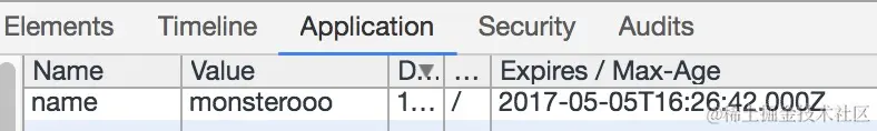 设置cookie的生存时间,默认为当然浏览器会话(Session)。当设置一个时间时,每次访问浏览器会用当前时间和cookie的expries做比对,如果过期cookie则会被删除。设置格式为GMT时间格式。示例如下:var t = new Date( +(new Date()) + 1000 * 120 ); document.cookie = `name=monsterooo;expires=${t.toGMTString()};`; -