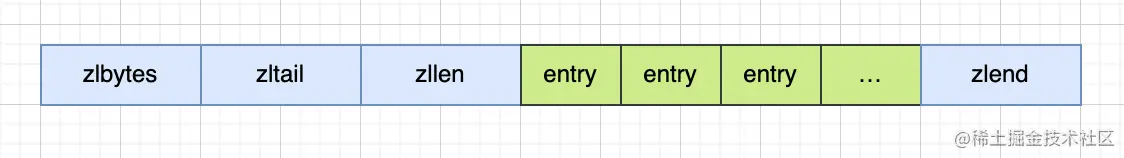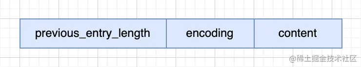 - entry的next节点:因为内存连续,又知道 previous_entry_length 和 encoding 的属性值,encoding 又包含 content 的长度,所以可以得到下一节点的起始位置。