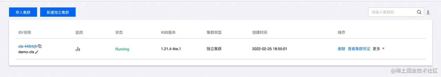 创建集群完成后,可以在页面端看到如下状态: