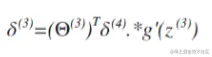 其中g'(Z(3))是S形函数的导数,g'(Z(3))=a(3).*(1-a(3))。而则是权重导致的误差的和。