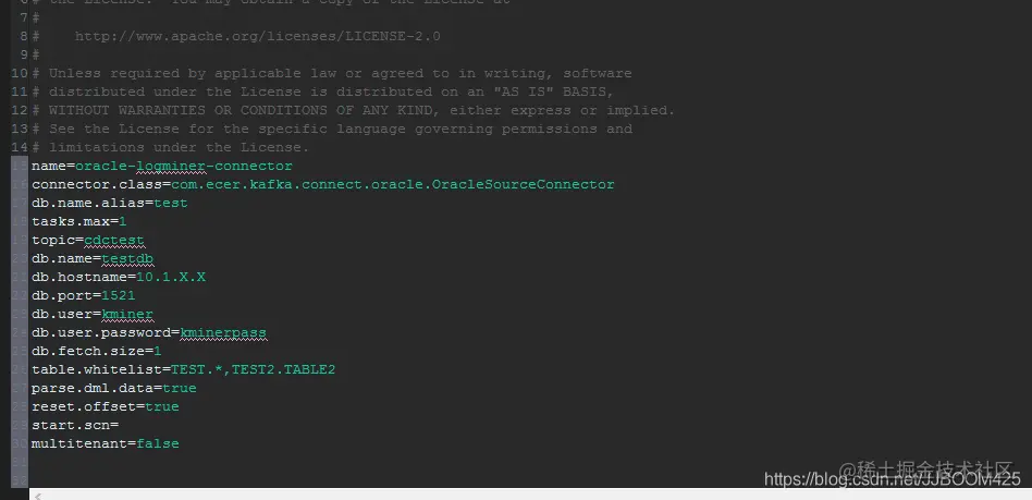 配置文件在此路径下:kafka-connect-oracle-master.config.OracleSourceConnector.properties