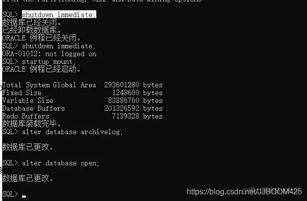 SQL>alter database archivelog;