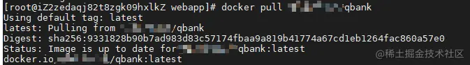在机器上重新拉取制作好的镜像,码掉的部分是刚才创建的用户名, 后面的qbank是创建的仓库名