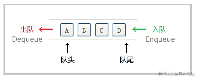 ③ 队列中的元素遵循先进先出的原则,即 FIFO 原则(First In First Out)