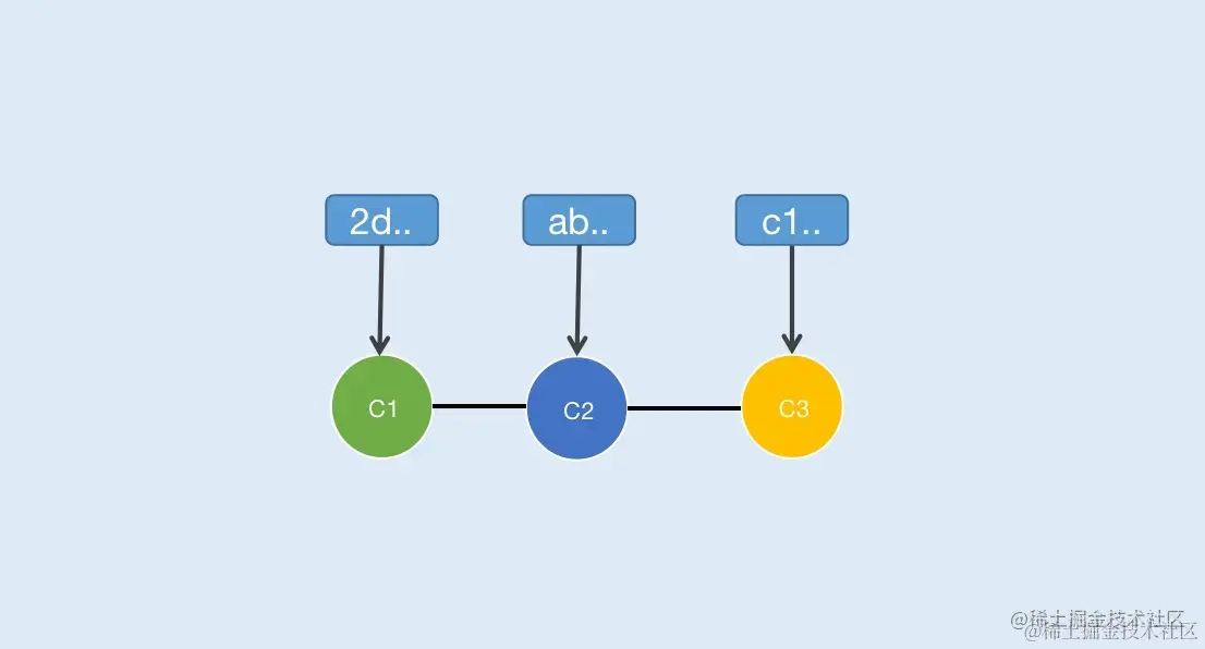 C2节点包含C1提交内容,同样C3节点包含C1、C2提交内容
