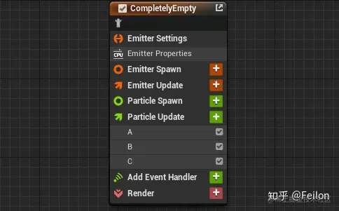 具体来说,假如我们有 A、B、C 三个待执行的内容,那么在一个粒子系统中,系统会先对粒子 1 依次执行 ABC ,之后对粒子 2 依次执行 ABC ,直至最后一个粒子执行完毕, ParticleUpdate 才算正式结束,执行从上至下进入下一个大的栏目中。