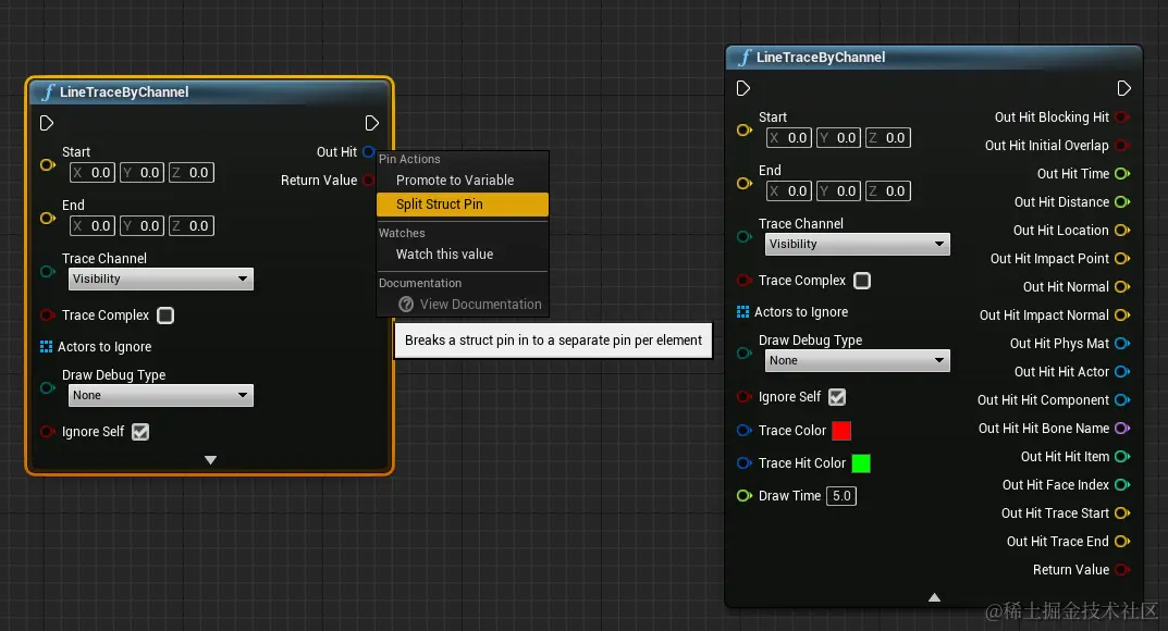 正常拖拽一个pin是拉出一条新的执行或数据线,但是按住Ctrl再拖拽则是把当前pin上所有的线移动到新的地方。