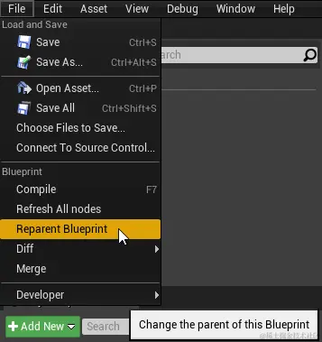 File →Reparent Blueprint