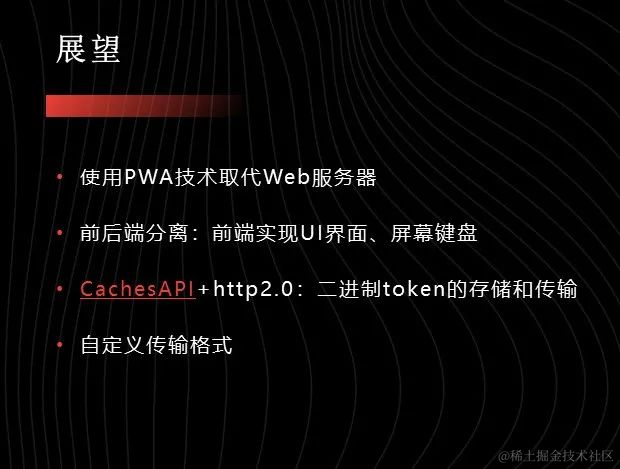 目前主流的会话凭证是利用localStorage+Authoriation头部实现JWT的存储,很遗憾,这3样东西都是文本格式的,如果想要存储为二进制格式,需要另3样技术:CachesAPI、http2.0、二进制token格式。