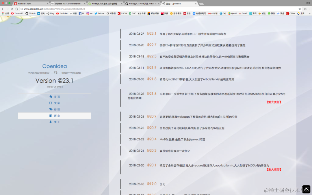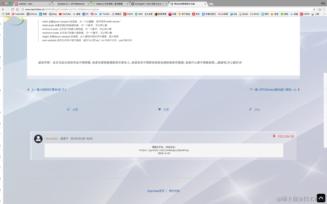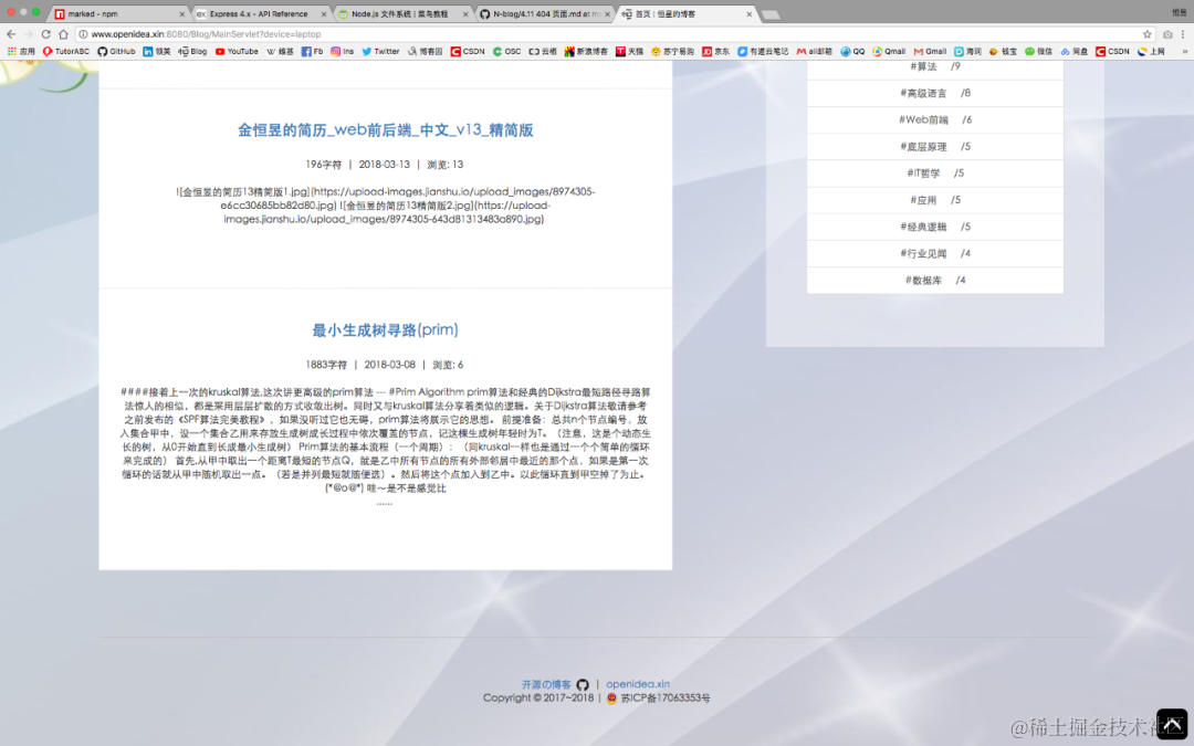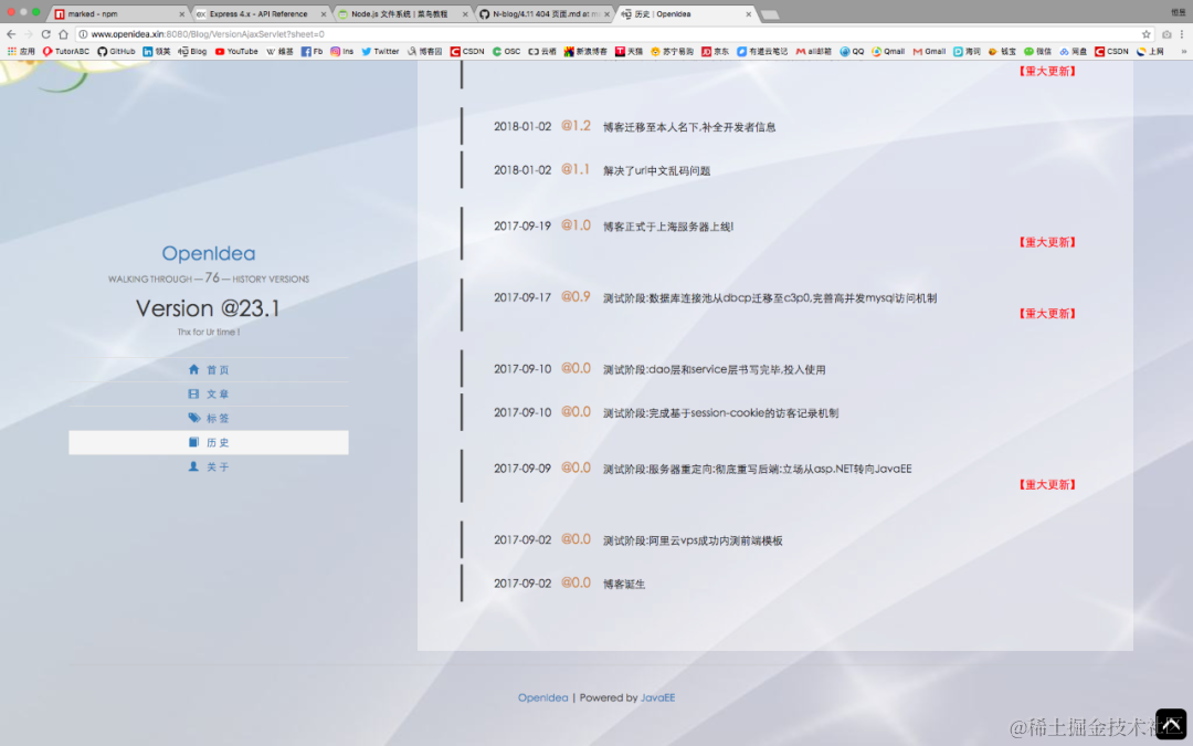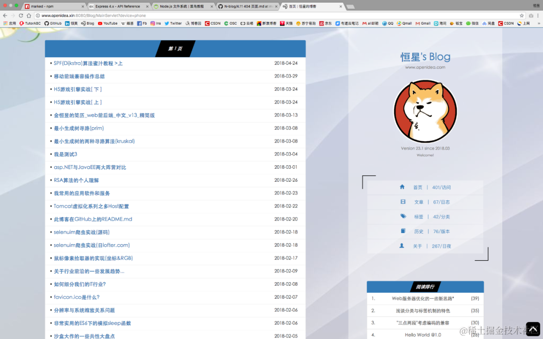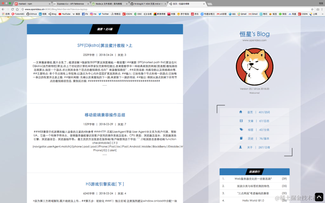 a personal blog site based on Java/Mysql - 基于Java/Mysql的个人博客网站;此时已经更新至version@23.1;这是一个java web博客项目,尽最大可能实现mvc模式,没有使用到框架,实现了首页预览,文章发布,点赞,评论,Markdown格式编写,分类,标签,阅读排行,时间轴,管理员管理博客,访客记录等。