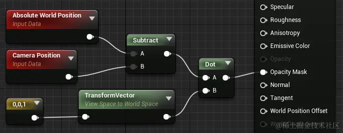 我们知道,视锥体裁剪(near clip)是整个渲染流水线前期组的任务,视锥体内部的物体都被cpu剔除掉,我们用虚幻的材质来模拟一下,利用蒙版(masked)材质实现部分剔除,单纯图一乐呵,没什么实用性,首先是最简单的视锥球的剔除:\