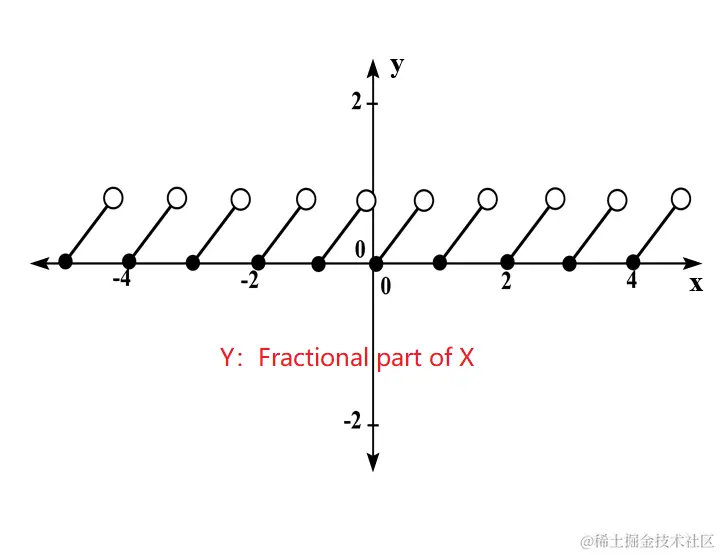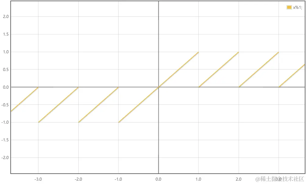 x对1取余和x的小数部分有什么区别?第一仪限上没有区别,但在第二仪限上是不一样的(注:仪限指正半轴或负半轴)。首先我们看fract函数,图像在x轴上方:\