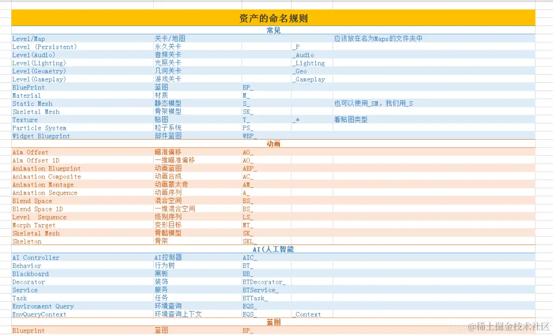 github有个UE4风格指南, 里面有提到一些命名上的规范: