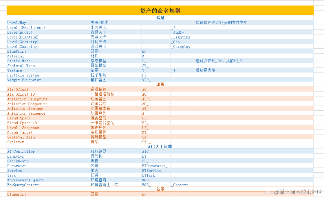 UE4_命名规则文件: