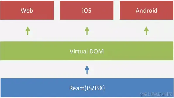 Virtual DOM 是 DOM 在内存中的一种轻量级表达方式,可以通过不同的渲染引擎生成不同平台下的 UI。React Native 与原生框架通过 Bridge 进行通信,如果使用 Chrome 浏览器进行调试,那么所有的 JavaScript 代码将运行在 Chrome V8 引擎中,通过 WebSocket 和原生代码进行通信。
