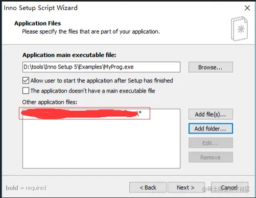 Add folders:添加应用程序文件,用nativefier生成的程序文件根目录即可,要把所有.dll文件及其他配置文件都包含进去;