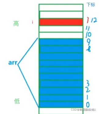 arr [12] = 0; 间接改变了i,相当于i = 0;