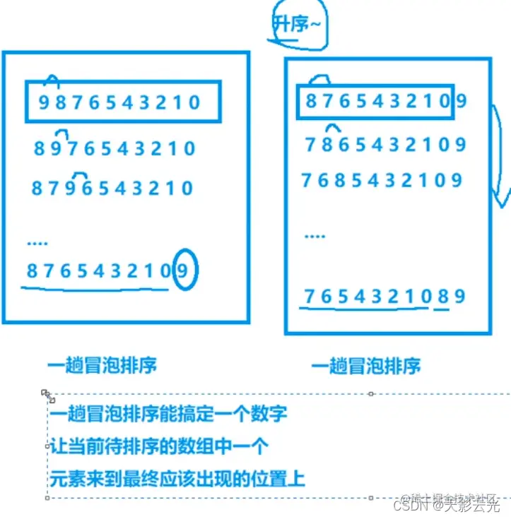 for(i=0; i<sz-1; i++)//sz-1趟冒泡排序