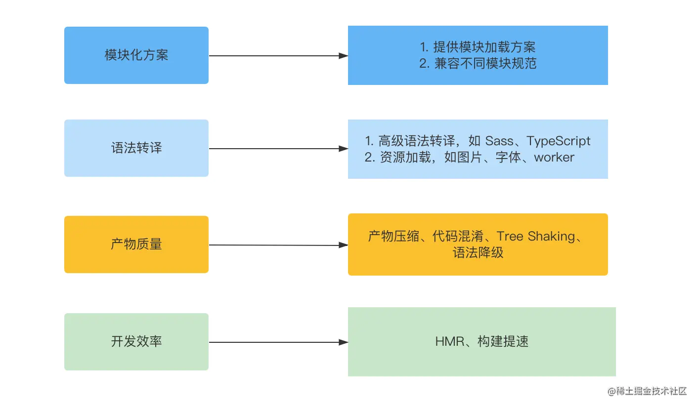 开发效率方面,构建工具本身通过各种方式来进行性能优化,包括