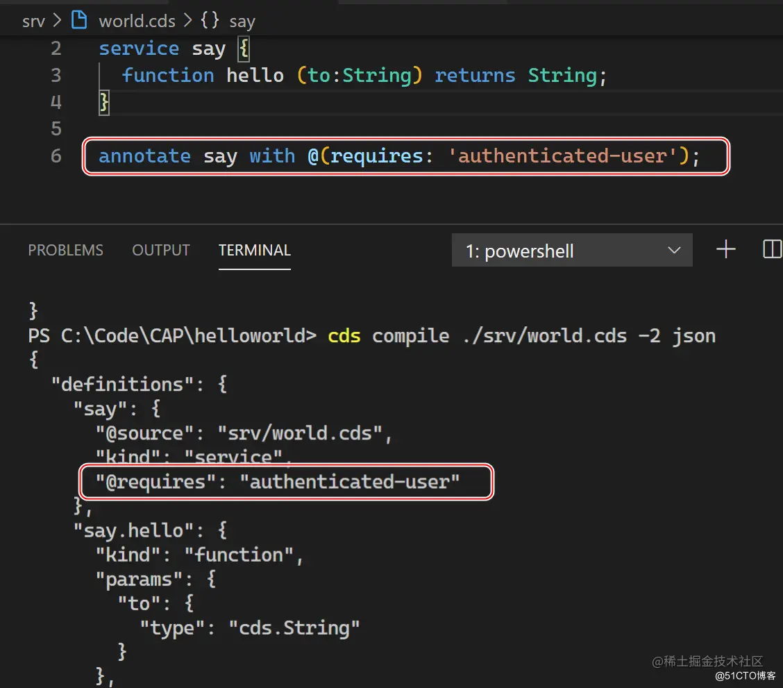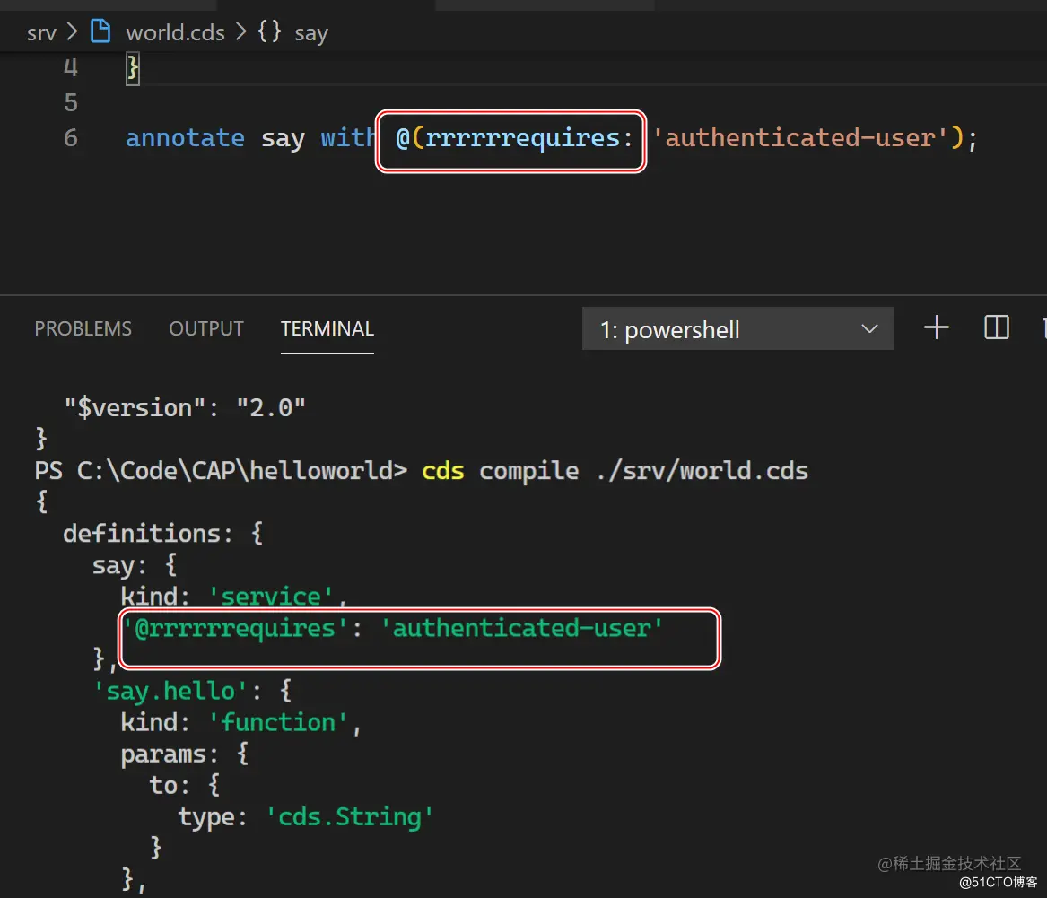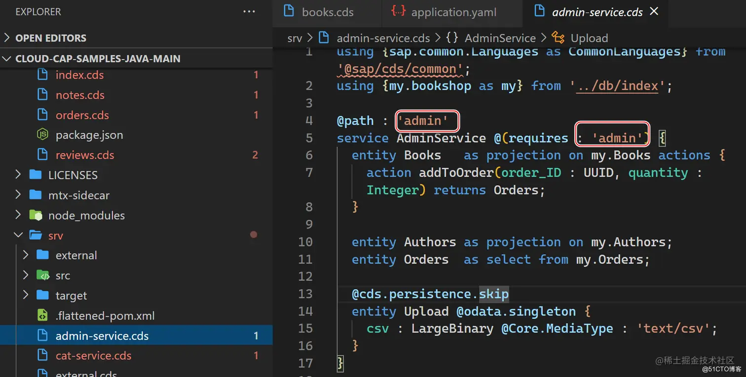cds 模型里的 Authorization 信息,会写入 xs-security.json 文件。