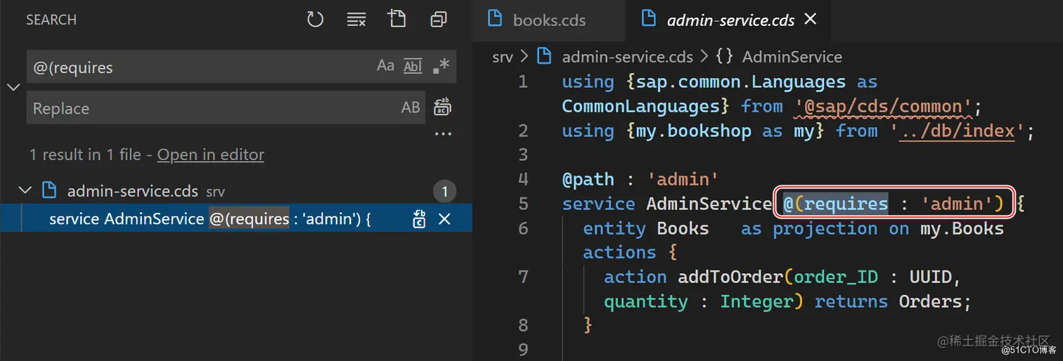 annotate ShopService.Books with @(requires: ['Vendor', 'ProcurementManager']);