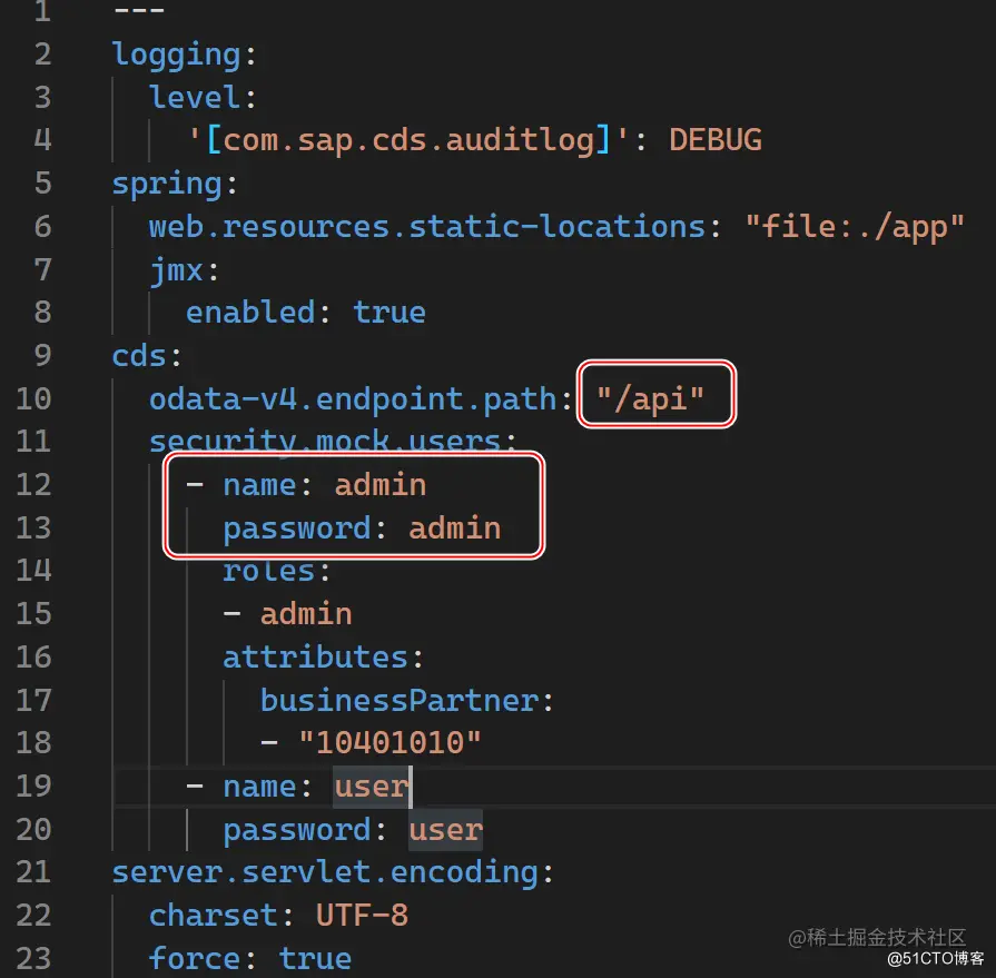 当通过 @requires 限制服务访问时,服务的元数据端点(即 /$metadata 以及服务根 /)默认也受到限制。 如果需要公共元数据,可以分别通过 config cds.env.odata.protectMetadata = false (Node.js) 或 cds.security.openMetadataEndpoints = true (Java) 禁用检查。