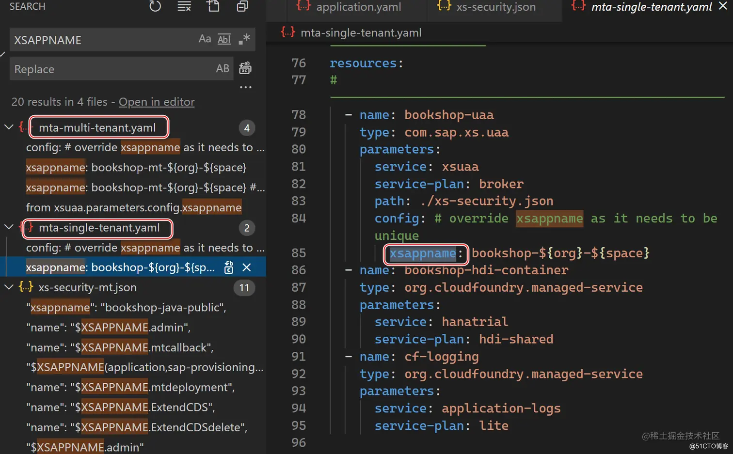 xsappname 的名称在 mta 等 yaml 文件里定义。