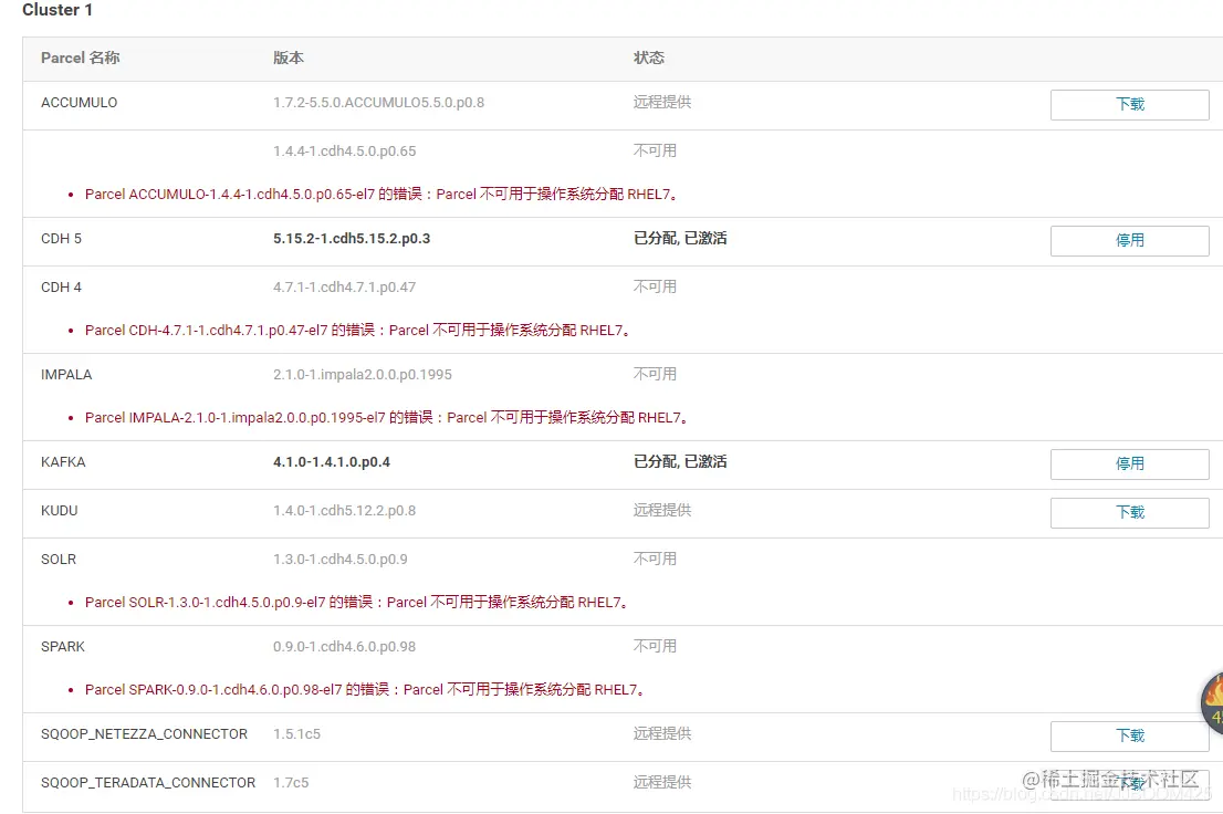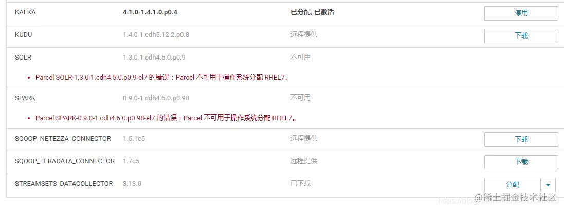 有可能会因为系统的内存不足导致 file /opt/cloudera/parcels/.flood/****.parcel...does not exist**。这个如果在激活时候报错的话,Cloudera并没有在控制台开发Cancel或者回滚的入口,此时服务状态就是卡住页面无法操作。解决办法可以看这篇: